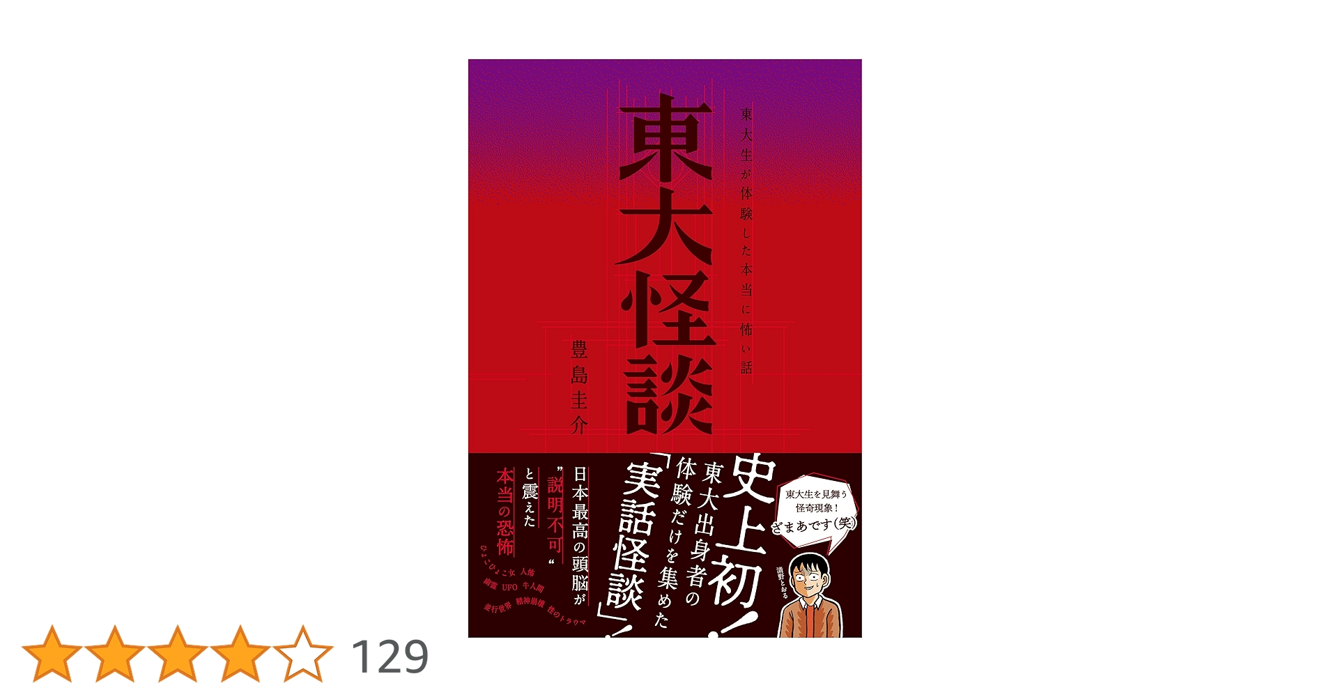 それ故に“東大”と冠したタイトルを見て、とんでもなく恐ろしい最高レベルの怪異が繰り広げられると思って読むと、その分だけとんでもない肩すかしを喰らわされる。しかも登場する怪異の現象そのものも、正直それほどインパクトのあるものはない。『東大怪談』というタイトルであるが、怪談のレベルが“東大”であるわけがなく、あくまで体験者が“東大”なだけなのであることを、ゆめゆめ忘れてはならない。